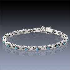 9 Topazes blues et 9 Péridots raffinées serties sur une monture en argent 925 Rhodié .