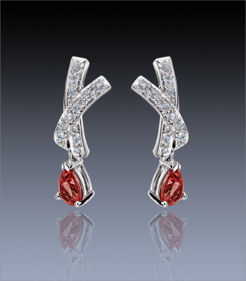 2 Splendides Grenats finies avec 24 Aigue-Marines, serties sur une monture en Argent 925 Rhodié.