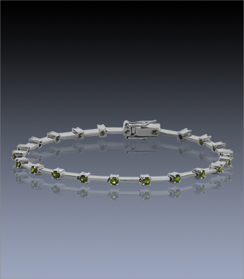 23 Péridots resplendissants sertis sur une monture en argent 925, recouvert d'une couche de rhodium .
