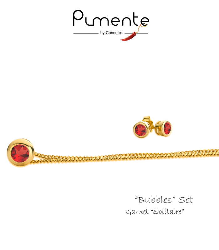 Set Pendentif et Boucles d'oreilles dorées 18carats ornés de lumineux Grenats Rouges .