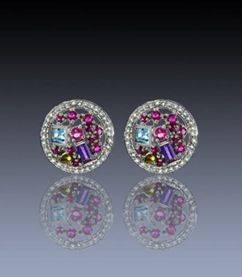 Masterpiece combining 94 marvellous precious stones in mixed colours set on 925 Sterling Silver with Rhodium finish.