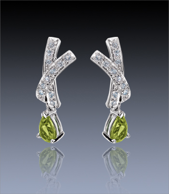 2 Splendides Péridots finies avec 24 Aigue-Marines, serties sur une monture en Argent 925 Rhodié.