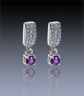 2 Gracieuses Améthystes et 42 Aigue-Marines Claires serties sur une monture en Argent 925 Rhodié