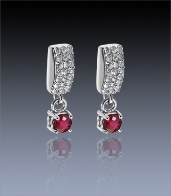 2 Elégants Rubis surmontés de 42 Aigue-Marines serties sur une monture en Argent 925 Rhodié.