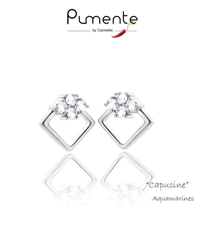 8 jolies Aigue-Marines serties sur une monture en argent 925, recouvert d'une couche de Rhodium .