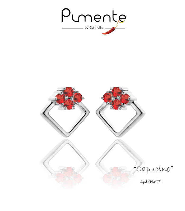 8 jolis Grenats Rouges sertis sur une monture en argent 925, recouvert d'une couche de Rhodium .