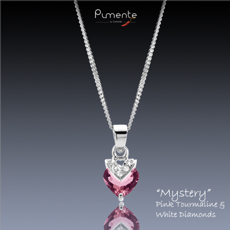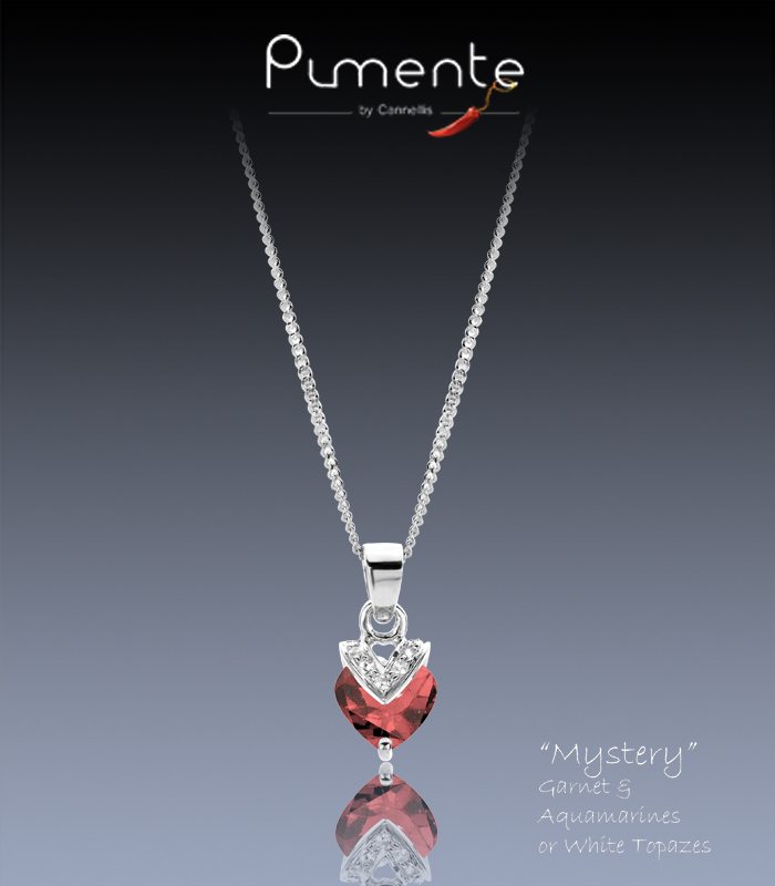 Pendentif en argent 925 Rhodié orné d'un Grenat Rouge de +/- 1.30 carats et couronné de 7 petites