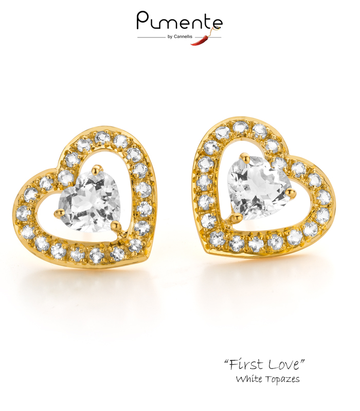 Glamerous 18K goldplated earrings with an exceptional "Heart Shape" cut White Topaz gemstone (approx. 1.5carats) surrounded by 20 White Topazes .