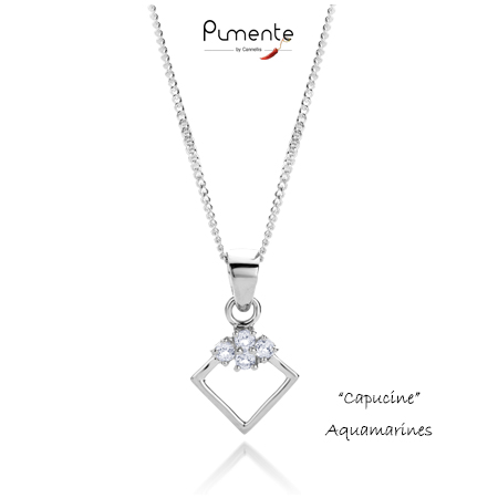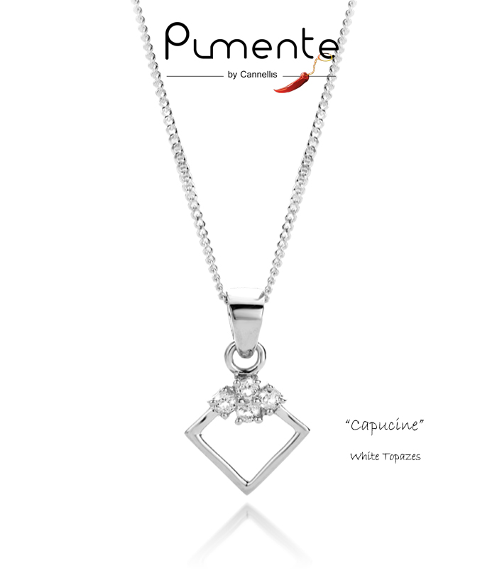 Pendentif orné de 4 lumineuses Topazes blanches sur une monture en 928 Argent Rhodié .