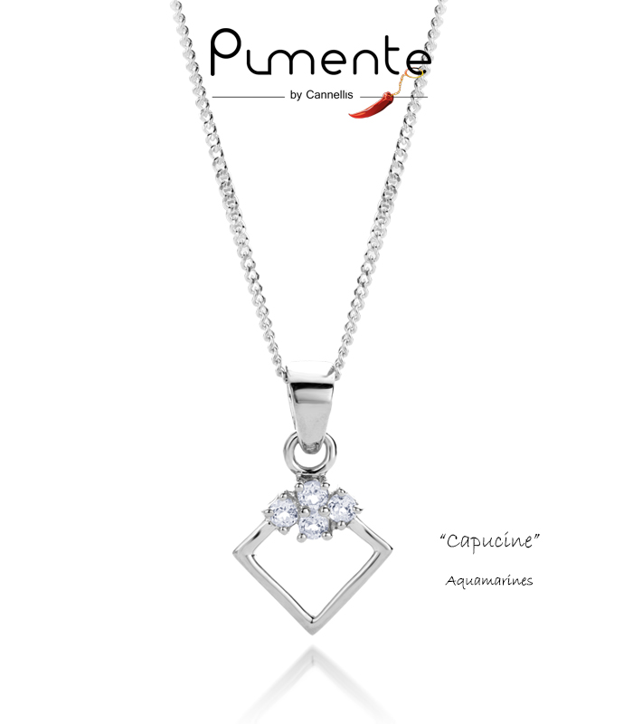 Pendentif orné de 4 lumineuses Aigue-Marines sur une monture en 928 Argent Rhodié .