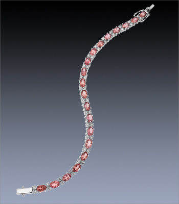20 Magnifiques Tourmalines Roses et 40 Diamants blancs, serties sur une monture en argent 925, recouvert d'une couche de Rhodium.